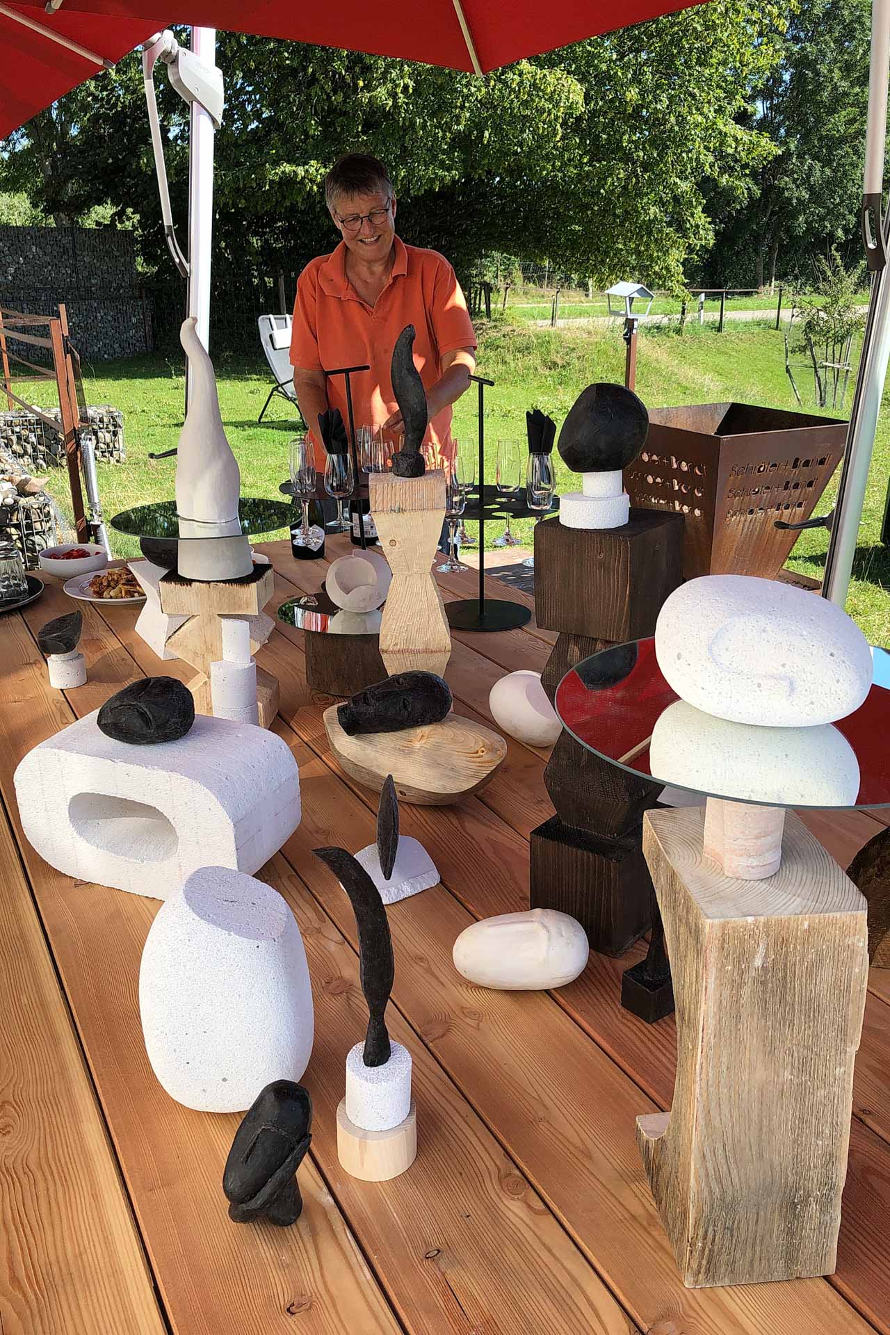Meine Werkstatt liegt idyllisch im Grünen, ist gut mit ÖV – Bushaltestelle direkt vor dem Haus – und dem Auto erreichbar. Die Arbeitsplätze befinden sich sowohl im Freien wie auch in der offenen Werkstatt. Wir kochen für Sie jeden Tag frisch und ermöglichen ein gemütliches Zusammensein und interessante Gespräche während des Mittagessens und der Kaffeepause.